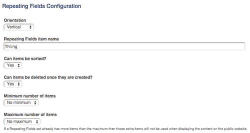 Near the bottom of the form you will see a section titled "Repeating Fields Configuration".