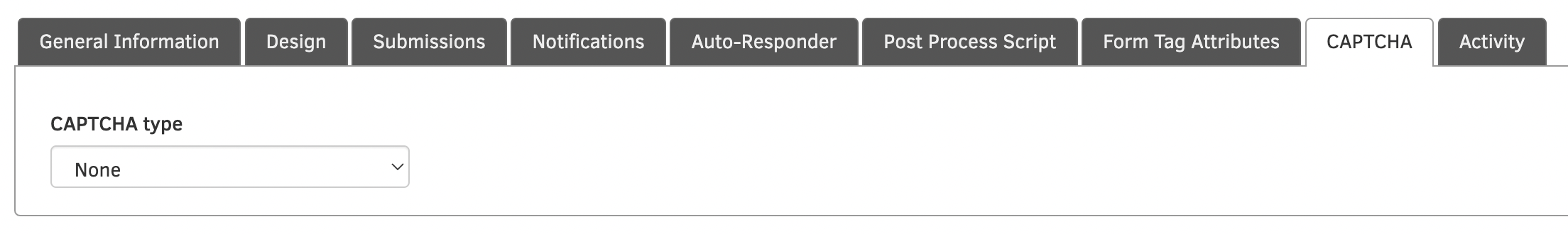 Now that reCAPTCHA is setup for your site you can use it on your forms. By default CAPTCHA is disabled on all forms. To enable it edit the form and go to the CAPTCHA tab.